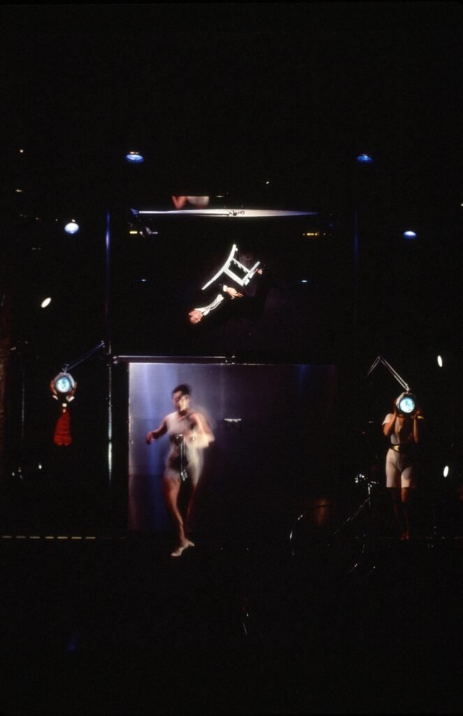 Diller & Scofidio explored the duality of space and the translation of matter within space in their 1987 performance, The Rotary Notary and His Hot Plate. Rooted in a fascination with spatial contradictions – inside and outside, above and below, interior and exterior – the performance stages a choreographed ritual of attraction and pursuit between a bride and a bachelor.[3] Here, the human body is transformed into a mechanical object, challenging the fundamental relationship between body and space. The performance centers on the interactions between these two entities, examining their moments of connection and disjunction. Diller & Scofidio introduce the hinge as a critical mediator between spatial and physical expressions. It serves as both a point of resolution and contradiction, highlighting the inherent instability between man and his environment — particularly between man and space.