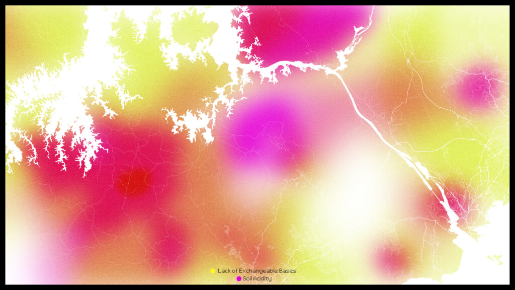 Due to extensive deforestation and expansion of human intervention into the formerly forested areas, soils in the Panamanian isthmus, particularly south of Lake Gatun, suffer from high levels of acidity and lack of exchangeable bases which inhibit growth of flora and thus inhabitation of fauna, hindering potential efforts for afforestation and re-introduction of biodiversity.