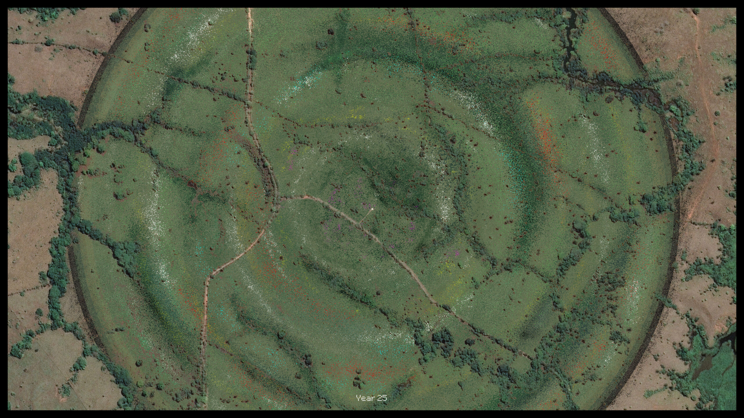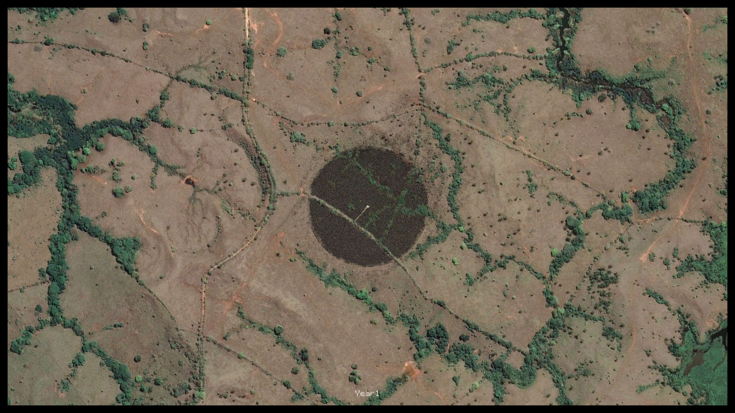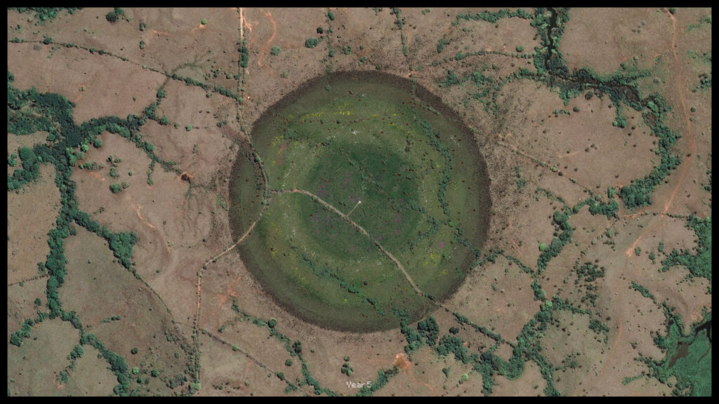 Figure 49. Binary Gardens. Year 1 / Year 5 / Year 250. Image © 2024 Google, CNES/Airbus.[/inmargin]
