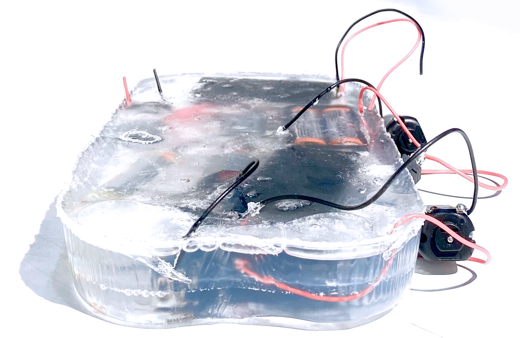 The electrical circuits are separated on different levels, from total inaccessibility to the isolation of the source of power and/or switch. Most radically, the turn-on switch within the molten soap is completely separated from the outer world, prohibiting any type of interaction; thus, the motor is forced to run until the battery will be fully depleted.