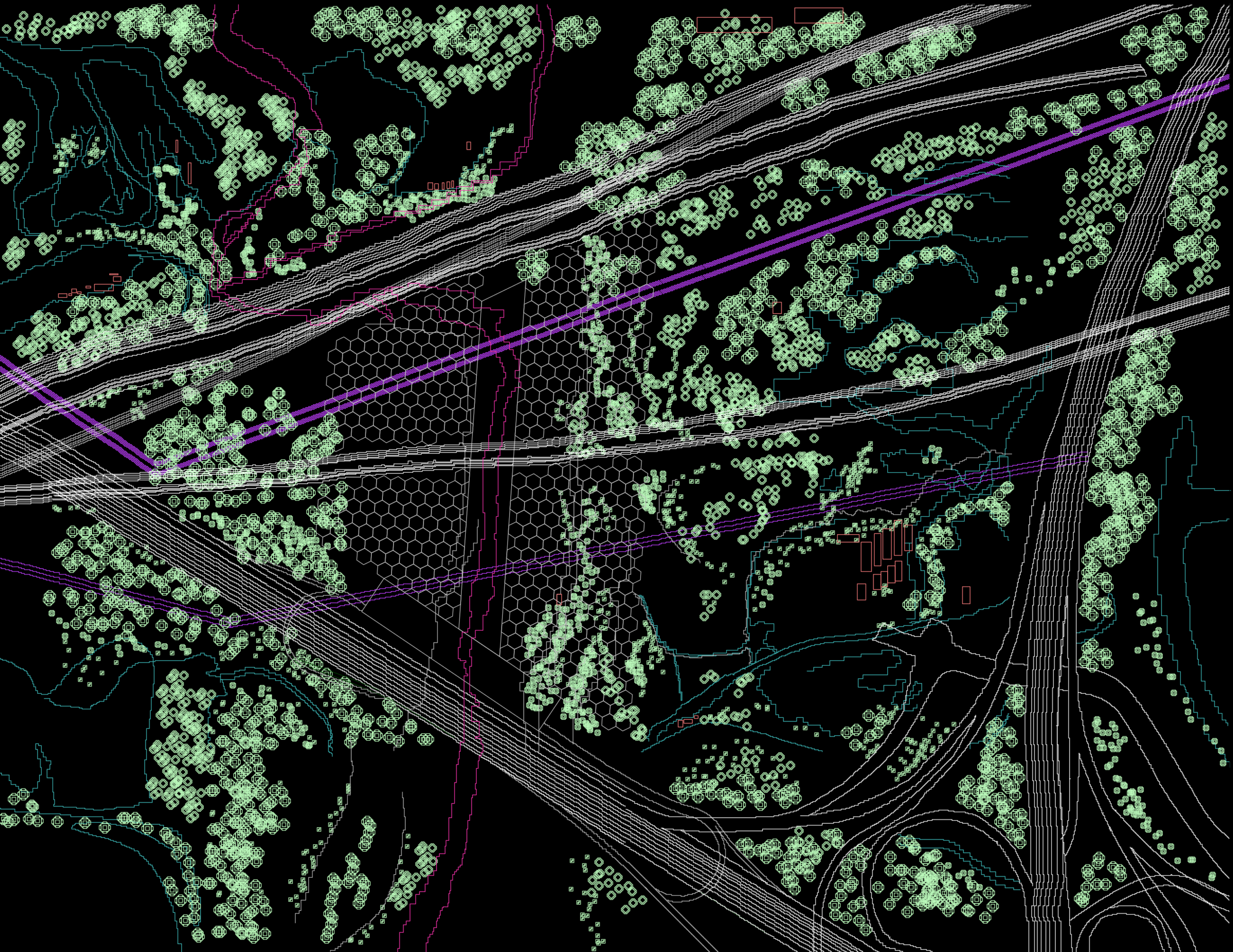 The site requirements of a new automated system are explored first in a model, in which the underlying networks become the backbone for the arrangement of objects or the site itself. A hierarchy is created between the supplementary and the primary objects that have to tap into the branches of the primary network at least two times, creating a certain redundancy. Supplementary objects are introduced to stabilize the ecology of the system, and due to the high interdependency on networks, each object is tightly interlocked. Yet there is always a possibility for a rearrangement, which would, for a while at least, establish a disorder in the system while a new order is created. Secondary networks emerge after the stabilization of the system, creating an abundance of linkages within the main object itself. The static state of the whole system itself may be questioned. The appearance of the networks alludes to the fact that only a small fragment of them can be seen in the given moment, indicating their open-system nature